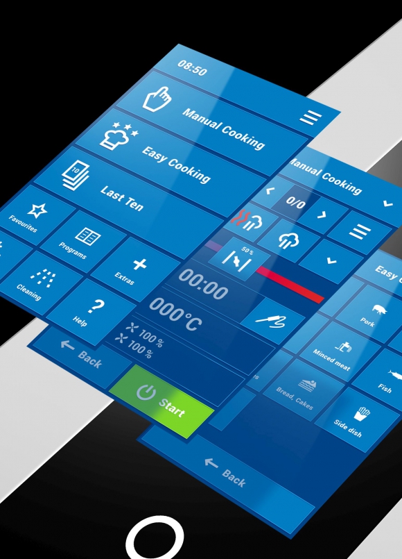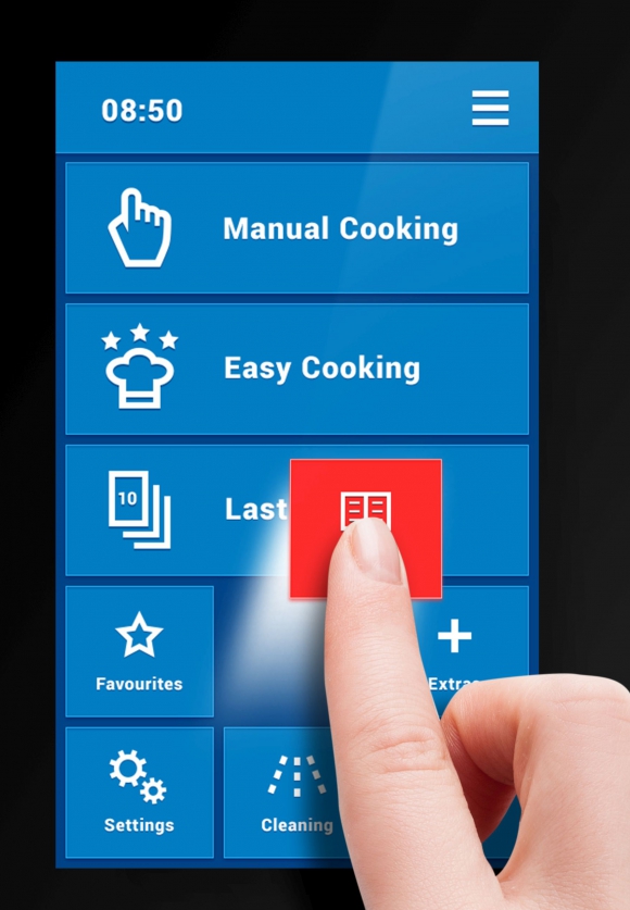 Możliwość dodania dowolnej funkcji z menu do ekranu głównego, który umożliwia łatwe dostosowanie pozycji, rozmiaru i koloru przycisków według preferencji każdego kucharza.