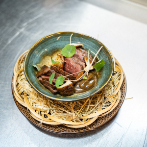 Do prezentacji naszych dań używamy wielu naturalnych dekoracji. Nie chodzi tylko o talerz, ale o to, co oferuje sama natura. Wykorzystujemy różnorodne liście, orzechy laskowe i włoskie, jagody, gałęzie, a nawet kości wołowe i głowy ryb.