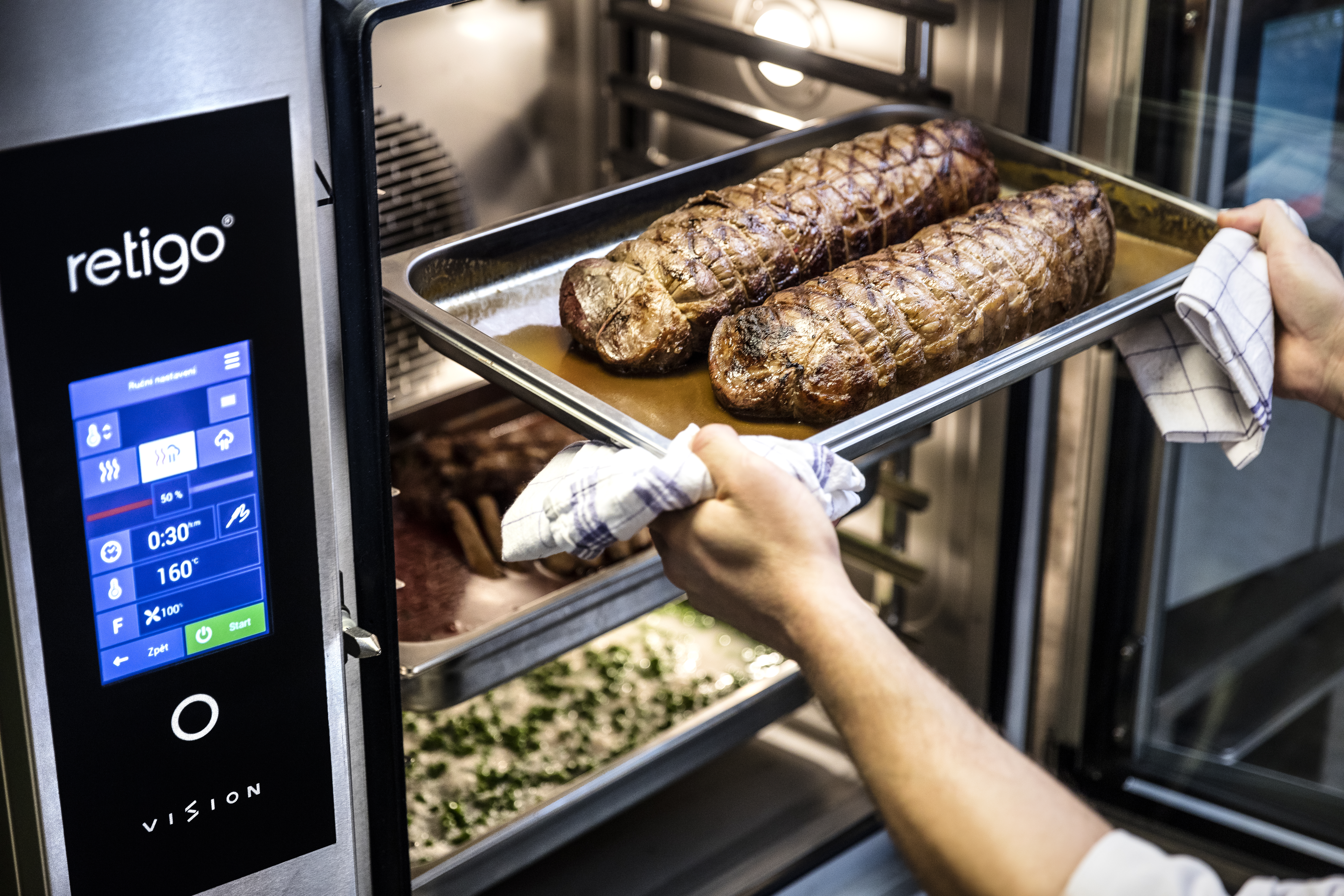Precyzyjnie wykonana komora gotowania z zaokrąglonymi krawędziami zwiększa skuteczność automatycznego mycia i zapobiega osadzaniu się zabrudzeń. System HACCP rejestruje automatycznie wszystkie operacje odbywające się w piecu konwekcyjno-parowym Retigo Vision. Zapisane dane można przedstawić na wyświetlaczu lub pobrać je do komputera.