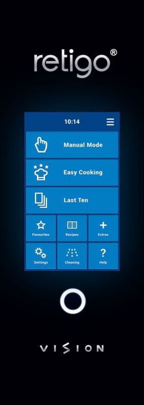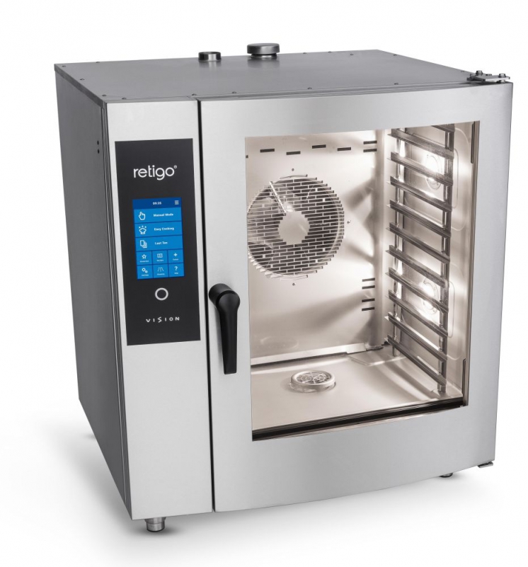 RETIGO Blue Vision to najwyższa seria modeli pieców konwekcyjno-parowych RETIGO Vision. Poszczególne piece zostały zaprojektowane tak, aby zaoferować wszystko, co potrzebne dla wymagających użytkowników. Sterowanie dokonywane jest za pomocą panelu dotykowego, umożliwiającego szybki dostęp do wszystkich funkcji kluczowych i specjalnych. Wszystkie modele są w zestawie podstawowym wyposażone w funkcję automatycznego mycia oraz Easy Cooking, klapkę odprowadzenia nadmiaru pary i 6-punktową sondę termiczną.