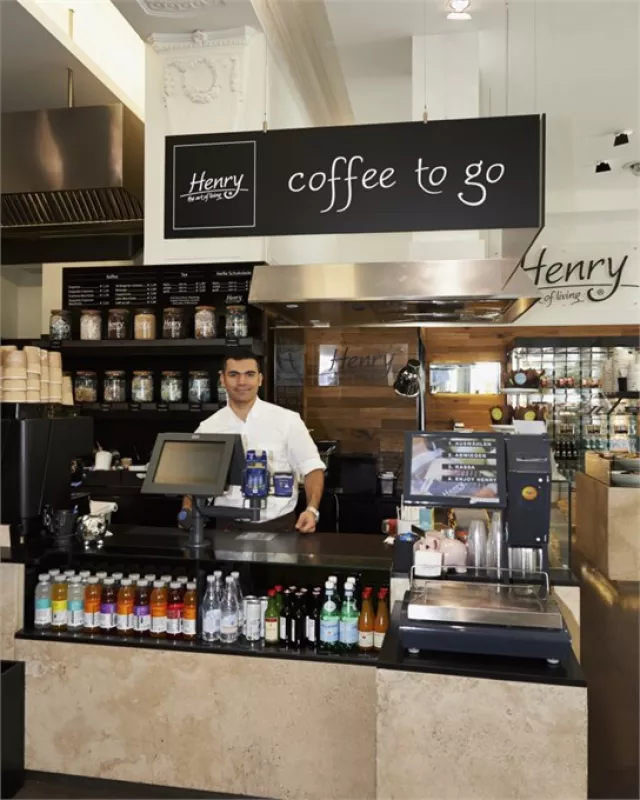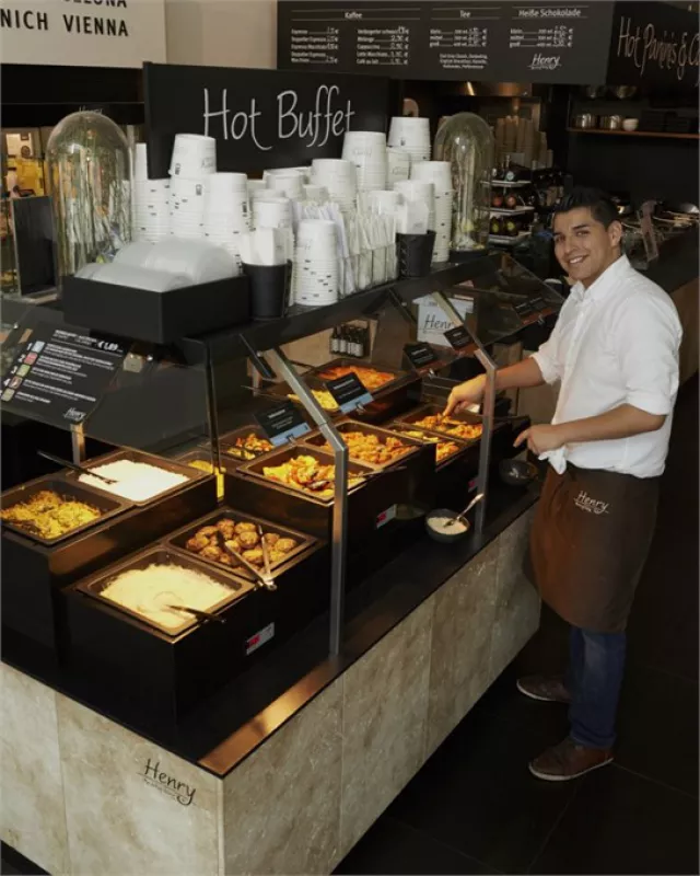 At the Vienna food bar "Henry - the art of Living," modern lifestyle meets tradition: the lunch menu, made from fresh seasonal ingredients, is suitable both for business lunches and for breaks during shopping. You can start with a "to go" breakfast or enjoy crispy pastries, delicate soups, salads, or choose from an international hot buffet selection.